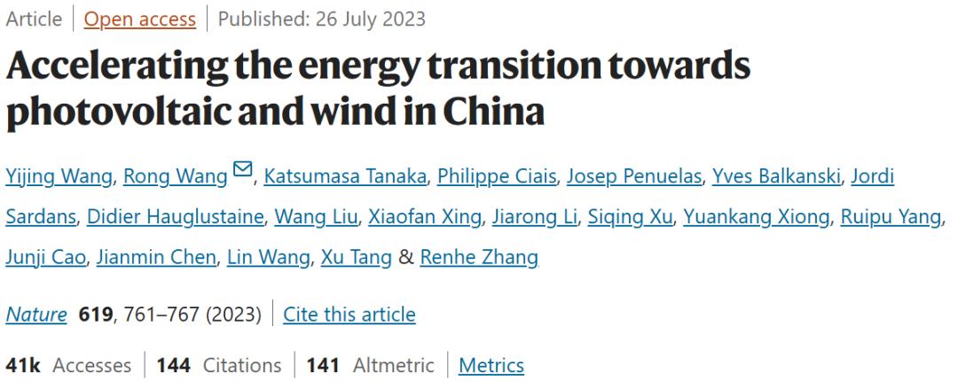 2024年夏天,王怡靜作為第一作者的論文《Accelerating the energy transition towards photovoltaic and wind in China》(《加速中國(guó)光伏發(fā)電和風(fēng)電的能源轉(zhuǎn)型》)在《自然》(Nature)上發(fā)表。