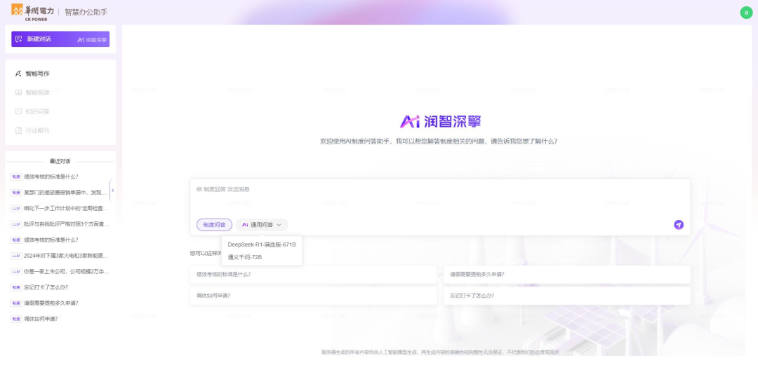 華潤(rùn)電力基于DeepSeek671B大模型的深度解析能力,對(duì)419份制度文件進(jìn)行結(jié)構(gòu)化處理,構(gòu)建制度知識(shí)庫(kù),初步實(shí)現(xiàn)制度問(wèn)答功能驗(yàn)證。