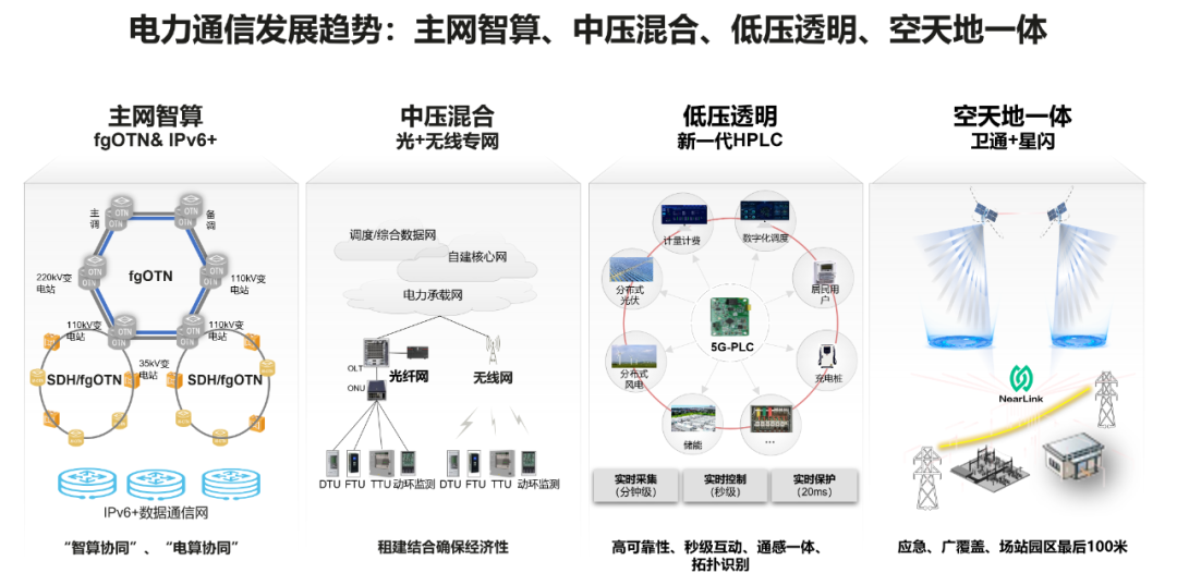 新型電力系統(tǒng)下,通信目標網(wǎng)呈現(xiàn)四大特征:主網(wǎng)智算、中壓混合、低壓透明、空天地一體。主網(wǎng)智算需要考慮的是包括以東數(shù)西算為代表的光跑電不跑,以邊緣計算為代表的電跑光不跑,以及結(jié)合時空特性,來助力解決新能源消納和削峰填谷;近期臺風應急帶給我們的啟發(fā)是,10kV通信網(wǎng)是電網(wǎng)通信目前最薄弱的環(huán)節(jié),是典型的“盲區(qū)”。這需要體系性規(guī)劃以光纖+無線專網(wǎng)的通信目標網(wǎng),也要輔之以空天地一體的應急和廣覆蓋能力;隨著海量的分布式光伏接入、充電樁接入、分布式儲能接入、用戶互動及潛在的負荷側(cè)交易,這需要體系性思考支撐400V低壓透明的通信需求。