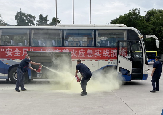 在演練時,隨著滿載乘客的大客車行駛至劉電賓館門前,突然行李艙起火,大客車駕駛員在突然遇火險緊急情況下,立即開啟應(yīng)急雙閃燈,靠邊停車,打開車門,迅速引導(dǎo)車內(nèi)乘客有序疏散,并要求大家用濕毛巾捂住口鼻,彎腰依次撤離到車外安全地帶。緊接著滅火組演練人員迅速行動起來,熟練地取出車載滅火器,拔下滅火器安全銷,用噴口對準(zhǔn)火源根部,及時將火撲滅,救護(hù)組及時疏散和救援下車人員,并對傷員身體狀況進(jìn)行基本護(hù)理和檢查。整個演練過程既緊張,又有條不紊,進(jìn)一步增強(qiáng)了全體員工的安全意識,真正掌握了交通工具突發(fā)火險后迅速逃生、自救、互救的基本方法,達(dá)到了演練的預(yù)期目的。