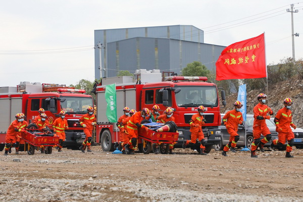 本次演練模擬背景是受強(qiáng)降雨影響,山體水分飽和,突發(fā)山體崩塌和滑坡地質(zhì)災(zāi)害險(xiǎn)情,造成房屋被埋、人員被困情景。上午10點(diǎn)30分,應(yīng)急供電、現(xiàn)場搜救、專家勘察、救助傷員、衛(wèi)生消毒……現(xiàn)場的每支隊(duì)伍各司其職,相互配合,讓應(yīng)急演練有序地開展進(jìn)行。