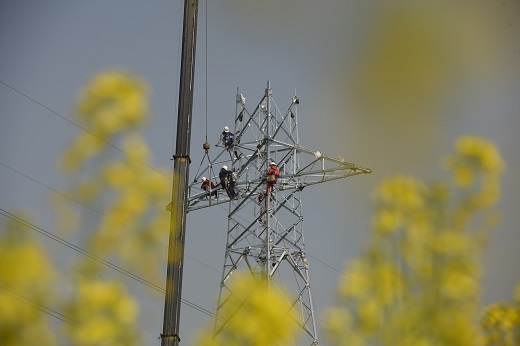 中國電力網(wǎng)訊(通訊員鄒小民、郭暉、朱景明)3月15日,在湖北宜都市枝城鎮(zhèn)何陽店村宜昌-荊州江南220千伏電網(wǎng)優(yōu)化工程53號桿塔施工場,國網(wǎng)湖北送變電公司施工人員吊裝鐵塔,加快推進(jìn)宜昌-荊州江南220千伏電網(wǎng)優(yōu)化工程建設(shè),工程投產(chǎn)后將增容電力“大動脈”,提升輸送能力?! ?/p>