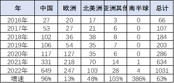 根據(jù)全國乘聯(lián)會數(shù)據(jù):中國2022年1-12月的銷量649萬臺,大幅超越歐洲的247萬和北美洲的103萬的銷量,中國新能源車優(yōu)勢明顯。