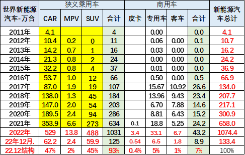 1、2022年世界新能源乘用車表現(xiàn)