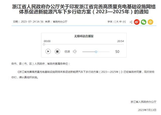 日前,浙江出臺《浙江省完善高質(zhì)量充電基礎(chǔ)設(shè)施網(wǎng)絡(luò)體系 促進新能源汽車下鄉(xiāng)行動方案(2023—2025年)》(下稱《行動方案》),根據(jù)《行動方案》,浙江要打造全省域暢行無憂、全生命周期服務(wù)管理、全場景豐富多彩的新能源汽車下鄉(xiāng)“浙江模式”。