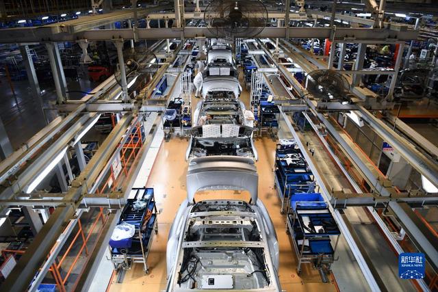 10月9日拍攝的廣東肇慶小鵬汽車智能網(wǎng)聯(lián)科技產(chǎn)業(yè)園內(nèi)的總裝生產(chǎn)線。