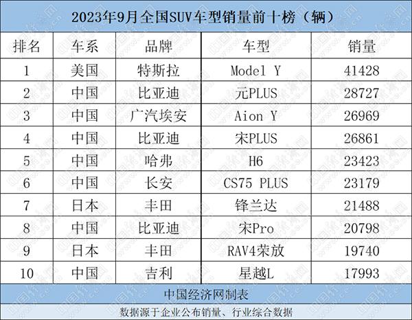 9月SUV:Model Y一馬當先,比亞迪三車銷量超2萬輛