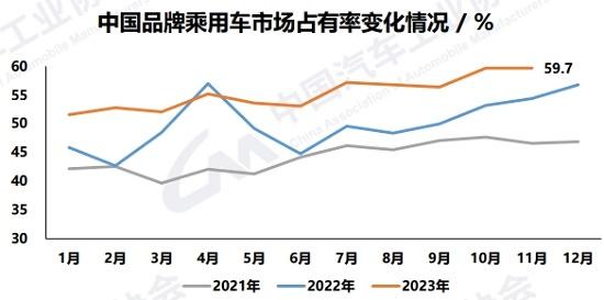 在乘用車市場中,中國品牌占比持續(xù)提升。11月,中國品牌乘用車共銷售155.6萬輛,同比增長37.9%,占乘用車銷售總量的59.7%,比上年同期提升5.4個(gè)百分點(diǎn);1-11月,共銷售1297.8萬輛,同比增長23.8%,市場份額為55.8%。“今年以來,中國品牌乘用車市場占有率一直維持在50%以上,如今已經(jīng)連續(xù)兩個(gè)月占比接近60%。”陳士華說。