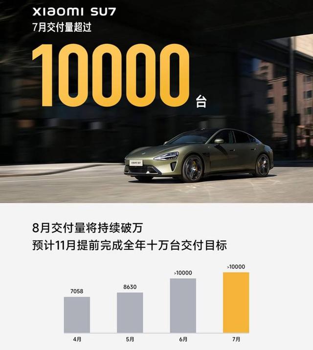小米7月的交付量超10,000輛,今年累計交付量已經超30,000輛。官方預測,其8月的交付量將持續(xù)破萬,預計在11月提前完成全年十萬輛的交付目標。