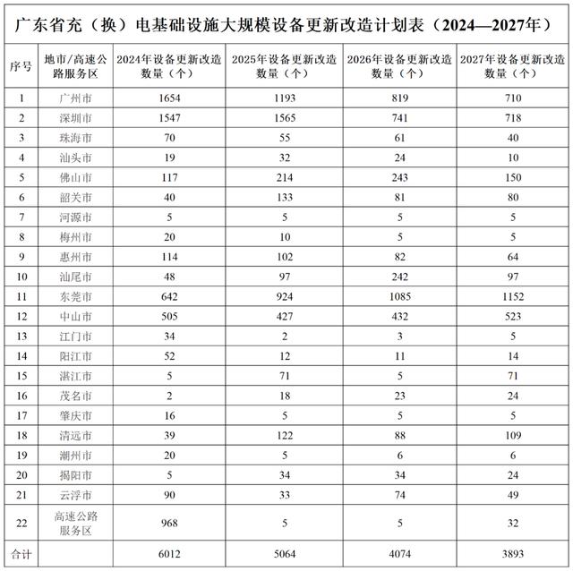 廣東省能源局發(fā)布《關(guān)于印發(fā)電動汽車充電基礎(chǔ)設(shè)施設(shè)備更新計劃的通知》(下稱《通知》)。計劃更新改造19043個電動汽車充電基礎(chǔ)設(shè)施設(shè)備。