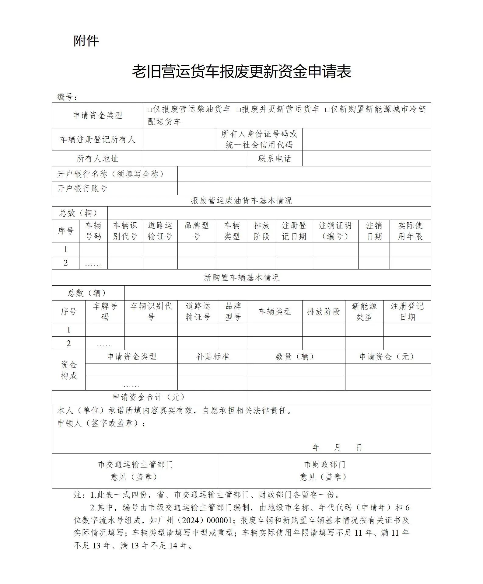 附件:老舊營(yíng)運(yùn)貨車報(bào)廢更新資金申請(qǐng)表