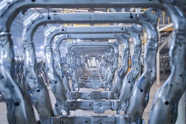 安徽萬安汽車零部件有限公 司內(nèi),剛焊接完畢的底盤件正在進(jìn)入下一環(huán)節(jié)。王權(quán)/攝