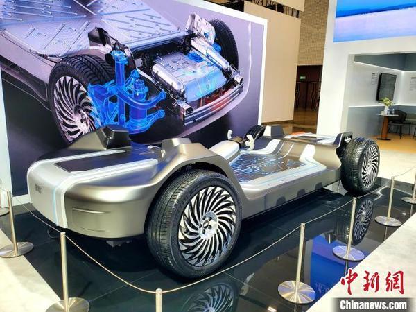 9月27日,為期三天的2024世界新能源汽車大會(huì)在??陂_幕。圖為車企在全球新能源汽車產(chǎn)品及技術(shù)展上展示的新能源汽車底盤。中新社記者 王曉斌 攝