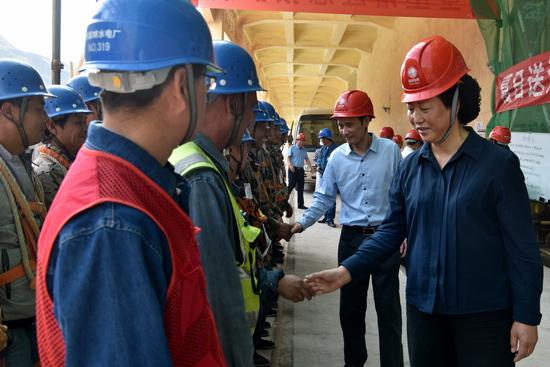 本網(wǎng)訊 6月27日下午,參加甘肅臨夏州電力系統(tǒng)技能大賽暨國網(wǎng)甘肅劉家峽水電廠首屆職工技能運動會閉幕式的臨夏州總工會黨組書記、常務副主席馬梅英以及省電力公司工會副主席李明東等一行,在劉電廠廠長李永清、黨委書記付廷勤及在家廠領導的陪同下,到進廠公路高邊坡防護處理工程現(xiàn)場慰問現(xiàn)場工程人員和農(nóng)民工兄弟。