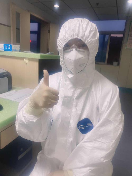 1月28日,負(fù)壓病房因人手不夠,在全院范圍緊急招募志愿者。負(fù)壓病房,需要“全副武裝”,每天和疑似病人近距離接觸,感染風(fēng)險(xiǎn)極大。但受老公經(jīng)常參加搶險(xiǎn)救援戰(zhàn)斗的影響,她多次向領(lǐng)導(dǎo)提出申請(qǐng),并遞交了入黨志愿書(shū),終于獲批“逆行”進(jìn)入最危險(xiǎn)的負(fù)壓病房。接下來(lái)的20多天,她每天都要陪著10幾個(gè)病人,認(rèn)真細(xì)致的檢查防護(hù)、登記、測(cè)體溫等等,但確診檢測(cè)是個(gè)比較漫長(zhǎng)的過(guò)程,有的病人難免產(chǎn)生焦慮、急躁的情緒,她總是像對(duì)家人一樣做好撫慰,幫助他們共克時(shí)艱。20多天來(lái),她以院為家,克服了各種工作和生活困難,比如在多重防護(hù)服下行動(dòng)不便、呼吸不暢、口干舌燥,累了就倚著墻蹲會(huì),困了就靠著椅背瞇會(huì)??傊?,就這樣神秘的消失在家人的視線(xiàn)中,有時(shí)連報(bào)個(gè)平安的電話(huà)都沒(méi)空打。