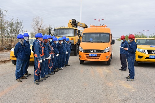 中國電力網(wǎng)訊 5月7日,阿右旗供電分局全面開啟春查外查第二階段工作,對雅布賴鎮(zhèn)區(qū)、工業(yè)園區(qū)全線逐級登桿消缺以及對銹蝕橫擔進行防腐處理,并更換改造6處變臺。此次春査外查工作共抽調(diào)各班組共計40人組成外查隊伍,出動帶電作業(yè)車、吊車、各類皮卡車等共計16輛作業(yè)車。