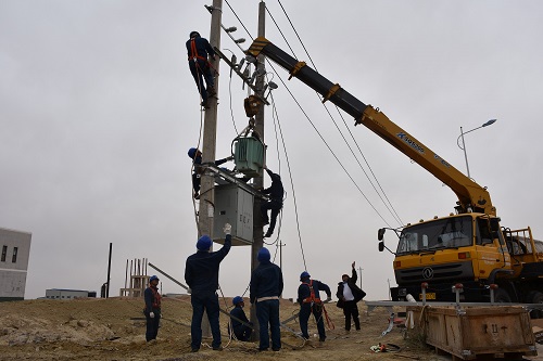 早上7點,全體人員在雅布賴營業(yè)所集合并開會,“今天的工作內(nèi)容為安裝變壓器,大家要注意做好安全措施,前不久剛發(fā)生的4·20事故我們要引以為戒,嚴格牢記‘十不干’,杜絕一切違章作業(yè)。”馬新民一邊發(fā)著新手套一邊提醒道。在10千伏9101中泉子Ⅰ回線管委會支14號桿處,作業(yè)人員要進行立桿并安裝低壓綜合配電柜,呼嘯的寒風加大了吊車吊物的難度,也更考驗工作班成員之間的默契,“4人登桿,4人當小工做地勤,1人協(xié)調(diào)指揮吊車”,負責人武開旋迅速做出工作安排。“巴爺,幫我在小繩上系個瓷瓶”、“偉哥,你那邊高了,再低一點就好了”,“聽我的,一二三,一起用力!”工作班成員各司其職、團結協(xié)作,僅用時四個小時,完成了對雅布賴工業(yè)園公變的安裝,進一步保證了工業(yè)園用電負荷。