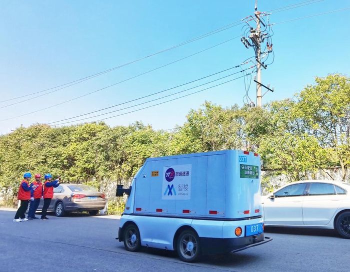 “六十三號智能配送車電量充足,已經(jīng)駛?cè)肴柵渌途€路。”11月11日,一臺藍白相間的無人駕駛電動貨車滿載著快遞包裹,從南陵縣宇培物流工業(yè)園區(qū)配送中心駛出,奔赴城區(qū)的快遞驛站。該園區(qū)配送管理人員韓師傅介紹,“雙十一”期間,類似這樣的智能配送車每天要從他們的園區(qū)發(fā)出約210車次。