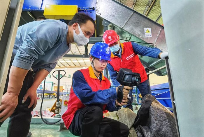 南陵縣“義診聯(lián)盟”成員正在當?shù)匚锪髌髽I(yè)開展設(shè)備用電隱患義務(wù)排查。董浩供圖