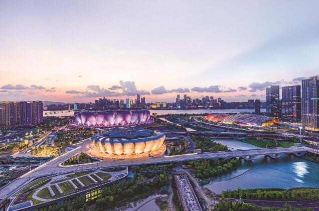 杭州亞運(yùn)會(huì)場(chǎng)館燈火璀璨。丁豪 攝