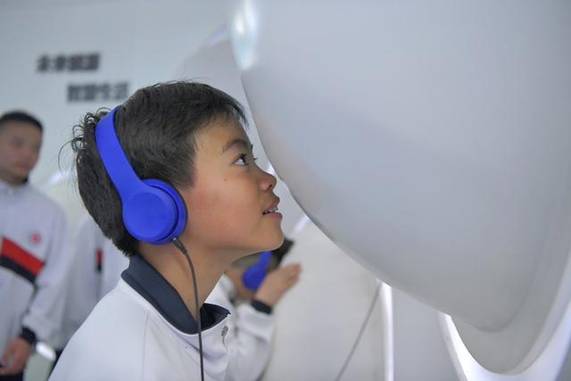 在南方電網(wǎng)貴州安順供電局節(jié)能展示廳,同學(xué)們通過(guò)互動(dòng)游戲了解如何節(jié)約能源等知識(shí)。