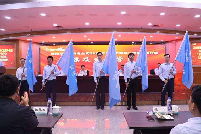 5月26日,國網(wǎng)馬鞍山供電公司“新脊梁”團(tuán)隊(duì)成員完成授旗禮。陶洋攝據(jù)了解,馬鞍山供電公司“新脊梁”專項(xiàng)行動不僅組建了“技能提升、寫作訓(xùn)練、宣講展示、創(chuàng)新創(chuàng)效”四個常規(guī)組隊(duì)進(jìn)行專業(yè)訓(xùn)練,實(shí)現(xiàn)能力提升,還將成立N個柔性團(tuán)隊(duì)揭榜掛帥開展重點(diǎn)攻關(guān),為推動公司高質(zhì)量跨越式發(fā)展建言獻(xiàn)策。