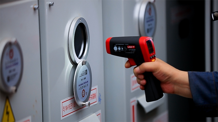 在昆明東風(fēng)廣場,工作人員正對變壓器內(nèi)的設(shè)備進行檢修(6月7日攝)。新華網(wǎng) 徐華陵 攝