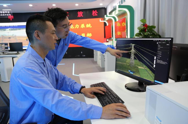 國網(wǎng)晉城供電公司員工在無人機實驗室對線路激光雷達建模數(shù)據(jù)進行分析
