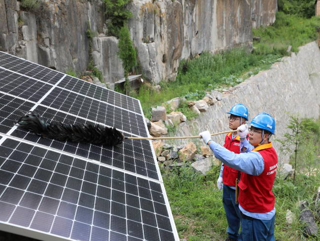 國網(wǎng)晉城供電公司員工在陵川縣嶺西村檢查光儲一體公用型微電網(wǎng)