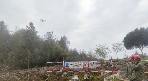 中國電力網(wǎng)訊 12月8日,在湖北省建始縣花坪鎮(zhèn)三岔槽村,湖北送變電工程有限公司恩施東-朝陽500千伏線路工程(恩施段)項(xiàng)目工人們翻山越嶺奔赴(T53號)基礎(chǔ)施工場,他們?nèi)讨坦呛L(fēng),運(yùn)用無人機(jī)對電網(wǎng)施工點(diǎn)位開展安全巡查,助力工程建設(shè)平穩(wěn)推進(jìn)。(郭秀春、郭暉)