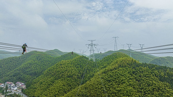 國網(wǎng)浙江電力員工驗收白鶴灘—浙江特高壓直流工程輸電線路
