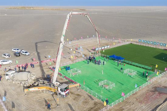 哈密—重慶±800千伏特高壓直流輸電工程首基澆筑。周廣科 攝