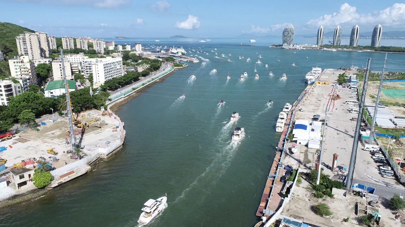 海南電網(wǎng)輸電運檢分公司啟動首個跨海電力遷改工程——三亞110千伏河口通道輸電線路電力遷改工程。黃麟德攝