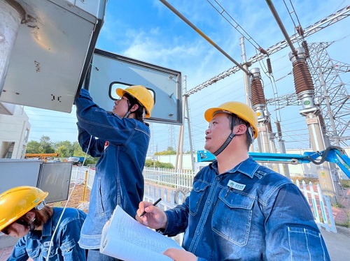 國網(wǎng)河南新鄉(xiāng)供電公司員工冒著40℃的高溫檢修變電設(shè)備。