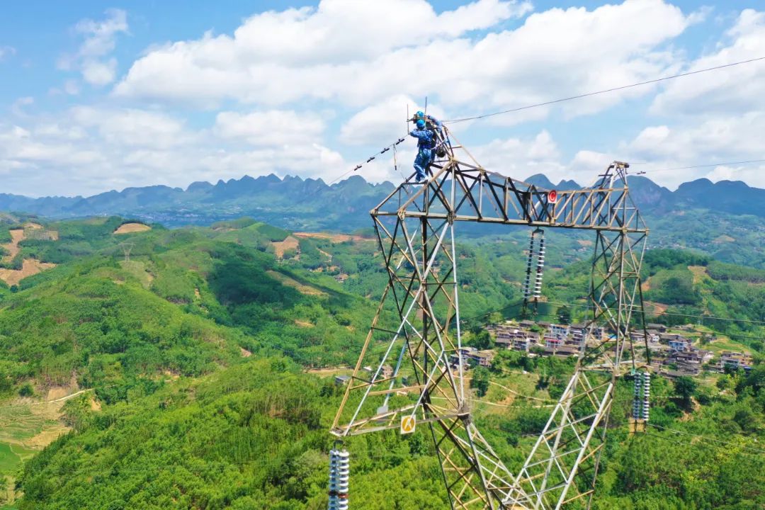 南方電網(wǎng)超高壓公司曲靖局運維人員正在開展220千伏魯馬Ⅱ線98號塔地線線夾更換工作,全力確保度迎峰夏期間可靠用電。(張柯龍 戴永平 攝)
