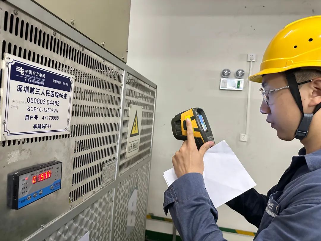 ▲8月31日,南方電網(wǎng)深圳龍崗供電局供電人員對醫(yī)院等涉及民生保障的重要場所開展設(shè)備巡視,全力確保供電穩(wěn)定可靠。(林澤彬 鐘謹蔚)