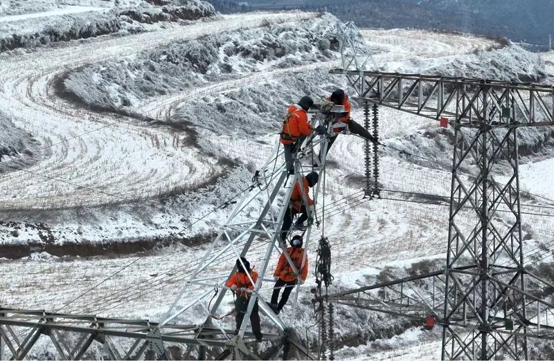 國(guó)網(wǎng)河南電力員工開展冰凍線路搶修工作