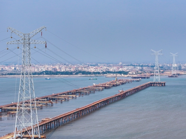 為最大程度上減小對海洋生態(tài)環(huán)境的影響,國家電網(wǎng)公司采用透水性構(gòu)筑物施工方式,在海上搭設(shè)4.7萬平方米的棧橋通道,棧橋搭設(shè)鋼材使用量超過了5.6萬噸,為國內(nèi)在建電力工程規(guī)模最大的海上棧橋。
