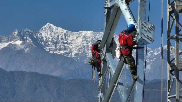 在四川甘孜藏族自治州瀘定縣,金沙江上游—湖北特高壓直流輸電工程建設(shè)正酣,電力施工人員在山脊上爭(zhēng)分奪秒組裝塔材。“我們所在的標(biāo)段處于高海拔重冰區(qū),新建的上百座鐵塔坡度均大于35度,最陡達(dá)65度,有的塔腿高差近20米,仿佛在‘刀背’上架鐵塔。”國(guó)網(wǎng)四川送變電公司項(xiàng)目經(jīng)理鄒忠旋介紹。這個(gè)全球海拔最高的特高壓直流輸電工程,投運(yùn)后每年可向華中地區(qū)輸送電量近400億千瓦時(shí),替代燃煤超1700萬(wàn)噸。