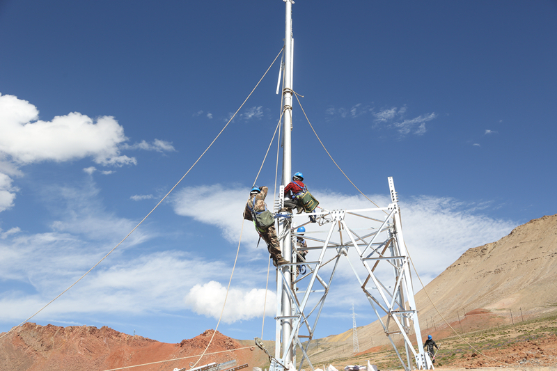 “目前我們完成了蘇里鄉(xiāng)98%的下戶線接入,剩下沒接入的用戶在轉(zhuǎn)場或者去了夏窩子。等他們一回來就能接入了。”工程項(xiàng)目負(fù)責(zé)人竇健說。在蘇里鄉(xiāng)組塔的施工階段,78~94號(hào)鐵塔最高,在4300米以上,塔材和石料全憑騾隊(duì)馱運(yùn)。施工高峰期時(shí)16匹騾子分成兩隊(duì),分別從央隆和蘇里雙向馱運(yùn)。眼下,鐵塔塔基澆筑已完成100%,已組立72基。