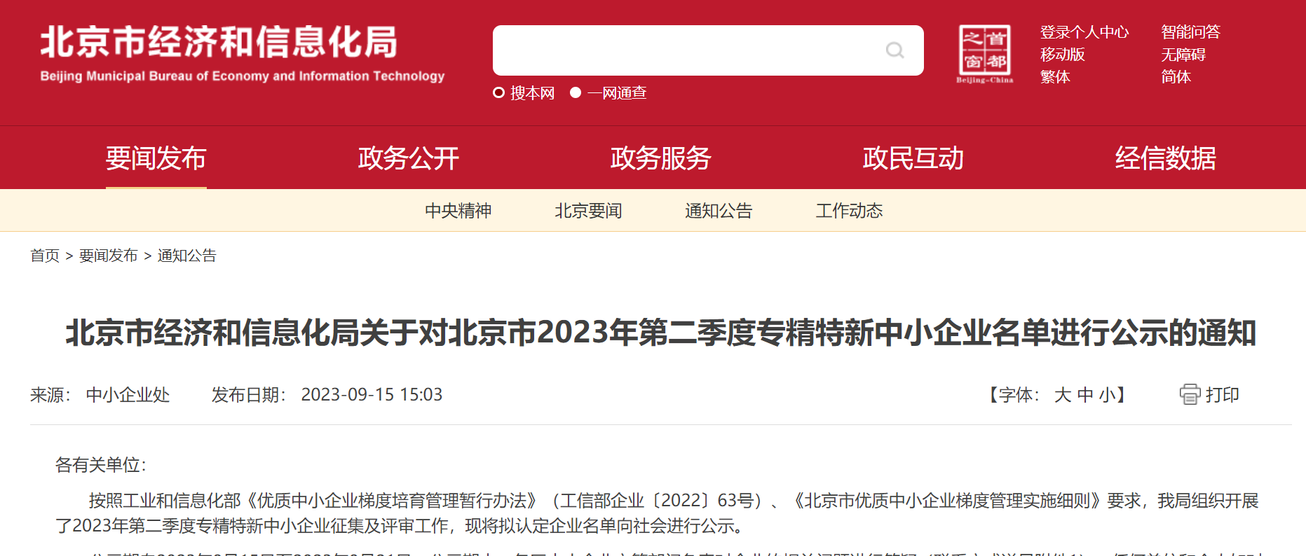 中國電力網(wǎng)訊(通訊員 時君柳) 9月15日,北京市經(jīng)濟(jì)和信息化局公布了《關(guān)于對北京市2023年第二季度“專精特新”中小企業(yè)名單進(jìn)行公示的通知》,國網(wǎng)信通產(chǎn)業(yè)集團(tuán)國電通憑借行業(yè)專業(yè)化、技術(shù)創(chuàng)新力、服務(wù)精細(xì)化從眾多參選企業(yè)中脫穎而出,獲得2023年度北京市“專精特新”中小企業(yè)榮譽稱號。