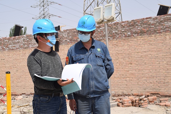 中國電力網(wǎng)訊 4月29日,筆者來到110千伏塔北中變和110千伏哥蘭德變電站改造工程現(xiàn)場時,新疆生產(chǎn)建設(shè)兵團第一師電力有限責(zé)任公司輸變電工區(qū)甲方代表李會強、李安國正在各自甲代現(xiàn)場認真履行職責(zé),確保改建工程質(zhì)量。