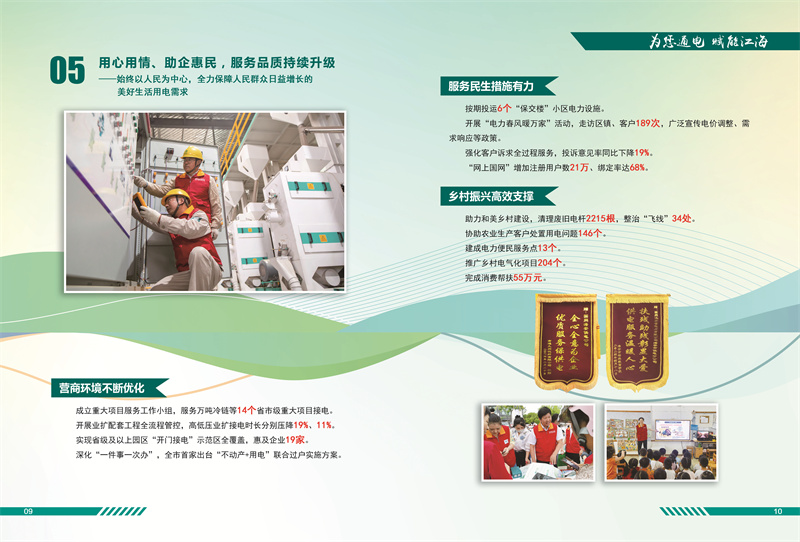 《白皮書》披露,2023年,該公司組織召開海安市迎峰度夏保供工作會議,深挖非工空調(diào)負(fù)荷調(diào)控潛力,促請政府出臺需求響應(yīng)、非工負(fù)荷調(diào)節(jié)能力建設(shè)等支持政策。堅持“杜絕增量、清除存量”原則,拆除1000千伏泰吳線下方違規(guī)大棚。滾動修編海安電網(wǎng)“十四五”專項計劃,主網(wǎng)工程有序推進(jìn)。深化數(shù)字化供電所創(chuàng)建成效,完成8項數(shù)字化示范任務(wù)。11項成果被納入省公司數(shù)字化門戶。完成發(fā)明專利授權(quán)4項、成果轉(zhuǎn)化2項,年度QC項目榮獲市公司一等獎。深化“開門接電”示范區(qū)建設(shè),全面省級以上園區(qū)全覆蓋,成立重大項目服務(wù)小組,服務(wù)萬噸冷鏈等14個省市級重大項目接電。公司員工助學(xué)殘疾兒童事跡《神秘叔叔,你是誰?》相繼被人民日報、新華社、中國青年報等中央媒體相繼轉(zhuǎn)載。