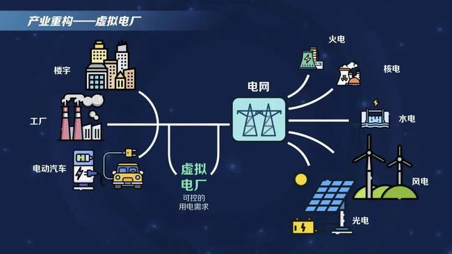 我們把未來(lái)發(fā)展中,這部分從調(diào)節(jié)“需”方來(lái)適應(yīng)“供”方的波動(dòng)的功能,叫做虛擬電廠。這是未來(lái)發(fā)展里非常值得期待的。現(xiàn)在我們國(guó)家在江蘇等一些省份已經(jīng)有這樣的例子,水泥、有色冶金電解鋁、鋼鐵行業(yè)那三種工業(yè)已經(jīng)能夠形成2000兆瓦的虛擬電廠,相當(dāng)于十來(lái)個(gè)燃煤火電廠的發(fā)電量的供需調(diào)節(jié)能力。隨著未來(lái)的發(fā)展,這部分新業(yè)態(tài)發(fā)揮的作用還會(huì)更大。