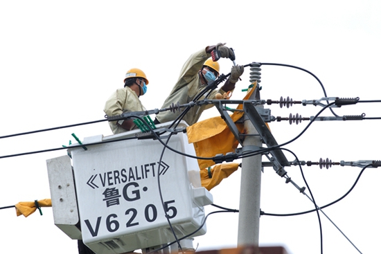 中國電力網(wǎng)訊 7月19日,國網(wǎng)壽光市供電公司帶電作業(yè)人員對10千伏官橋線高官支線036號桿帶電更換斷裂瓷瓶,并修補破損導線,進一步提升線路供電可靠性,為沿線居民客戶度夏舒心用電提供了保障。