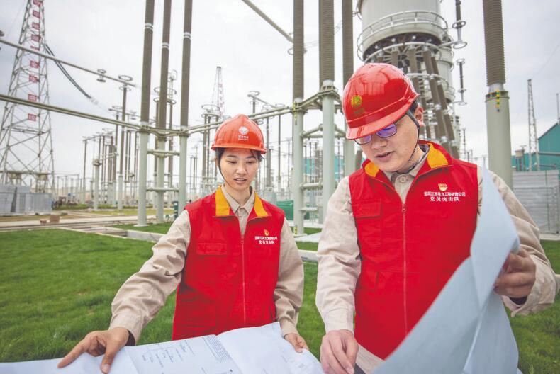 國網(wǎng)江蘇電力工程咨詢公司黨員突擊隊隊員在±800千伏姑蘇換流站工程驗收現(xiàn)場對照圖紙開展設(shè)備驗收。董小強 攝