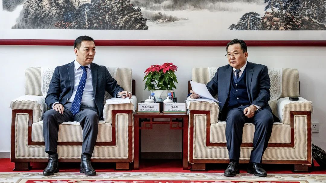 2月14日上午,內(nèi)蒙電力集團(tuán)與蒙古國(guó)能源部一行開展座談交流。蒙古國(guó)能源部能源政策執(zhí)行協(xié)調(diào)司司長(zhǎng)那森陶格陶,蒙古國(guó)家電網(wǎng)公司執(zhí)行總裁達(dá)西達(dá)瓦,集團(tuán)公司黨委書記、董事長(zhǎng)賈振國(guó),總經(jīng)理、黨委副書記郝智強(qiáng),公司領(lǐng)導(dǎo)閆軍、白鳳英及雙方相關(guān)人員參加座談。