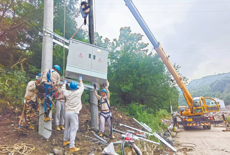 朝陽區(qū)搶修團隊在門頭溝王平鎮(zhèn)南澗村對部分受損線路開展復電搶修。張文靜 攝