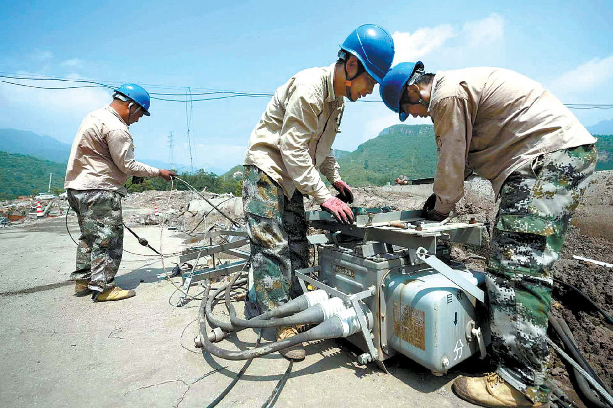 搶修人員持續(xù)努力,在完成最后380米跨河及山腰處線路的架設工作后,順利完成了房山區(qū)張坊鎮(zhèn)片上路10千伏線路的搶修工作。 王洋 攝