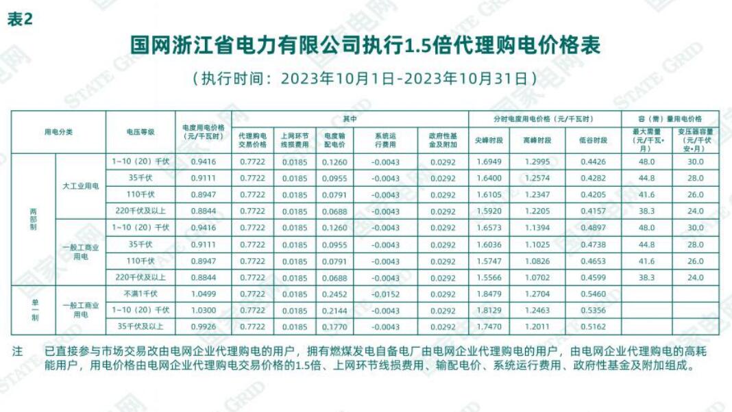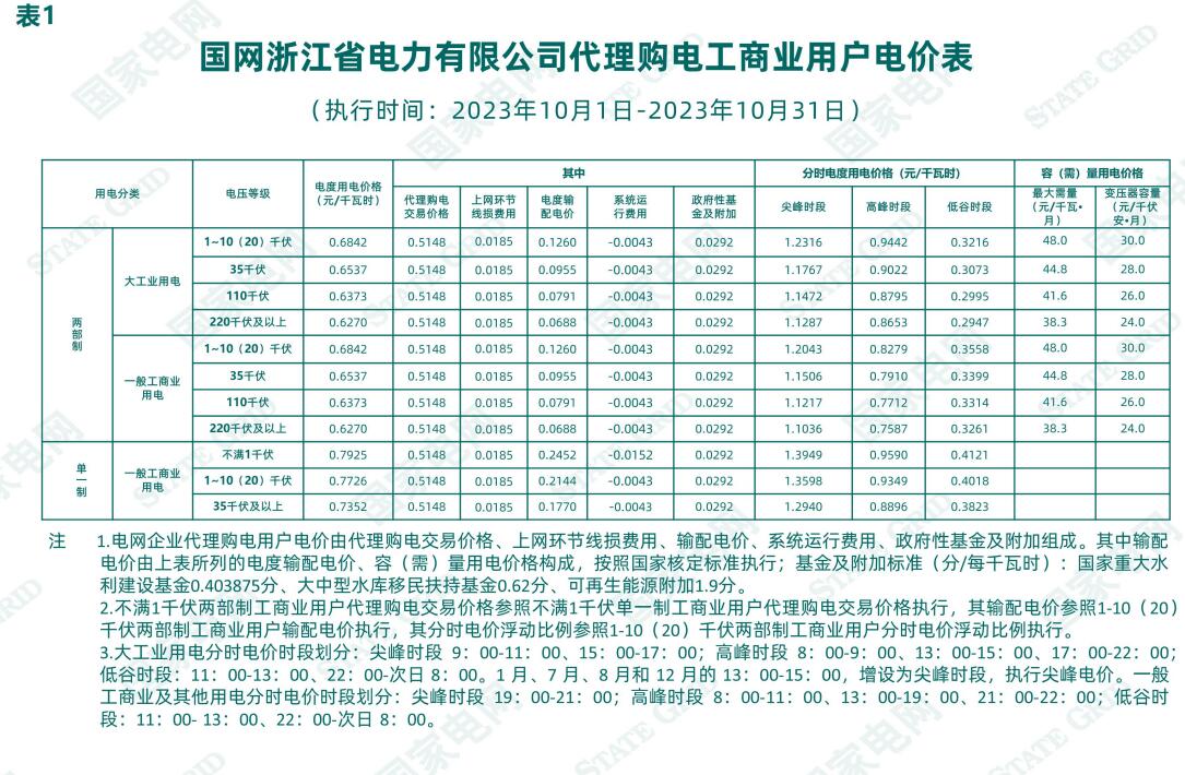 根據(jù)《國(guó)家發(fā)展改革委關(guān)于第三監(jiān)管周期省級(jí)電網(wǎng)輸配電價(jià)及有關(guān)事項(xiàng)的通知》(發(fā)改價(jià)格〔2023〕526號(hào))、《國(guó)家發(fā)展改革委辦公廳關(guān)于進(jìn)一步做好電網(wǎng)企業(yè)代理購(gòu)電工作的通知》(發(fā)改辦價(jià)格〔2022〕1047號(hào))、《省發(fā)展改革委關(guān)于轉(zhuǎn)發(fā)<國(guó)家發(fā)展改革委關(guān)于第三監(jiān)管周期省級(jí)電網(wǎng)輸配電價(jià)及有關(guān)事項(xiàng)的通知>的通知》(浙發(fā)改價(jià)格〔2023〕139號(hào))、《省發(fā)展改革委關(guān)于轉(zhuǎn)發(fā)〈國(guó)家發(fā)展改革委辦公廳關(guān)于進(jìn)一步做好電網(wǎng)企業(yè)代理購(gòu)電工作的通知〉》(浙發(fā)改價(jià)格〔2023〕99號(hào))、《省發(fā)展改革委關(guān)于轉(zhuǎn)發(fā)〈國(guó)家發(fā)展改革委辦公廳關(guān)于組織開(kāi)展電網(wǎng)企業(yè)代理購(gòu)電工作有關(guān)事項(xiàng)的通知〉的通知》(浙發(fā)改價(jià)格〔2021〕406號(hào))、《2023年浙江省電力市場(chǎng)化交易方案》(浙發(fā)改能源〔2022〕302號(hào))、《省發(fā)展改革委 浙江能源監(jiān)管辦 省能源局關(guān)于做好2023年度浙江省電力市場(chǎng)化交易相關(guān)工作的通知》《國(guó)網(wǎng)浙江省電力有限公司關(guān)于報(bào)備代理購(gòu)電價(jià)格預(yù)測(cè)機(jī)制的函》(浙電函〔2022〕169號(hào)),經(jīng)報(bào)省發(fā)展改革委備案,我公司就2023年10月1日至2023年10月31日代理購(gòu)電價(jià)格有關(guān)事項(xiàng)進(jìn)行公示,詳見(jiàn)《國(guó)網(wǎng)浙江省電力有限公司關(guān)于2023年10月代理工商業(yè)用戶購(gòu)電價(jià)格的公告》。